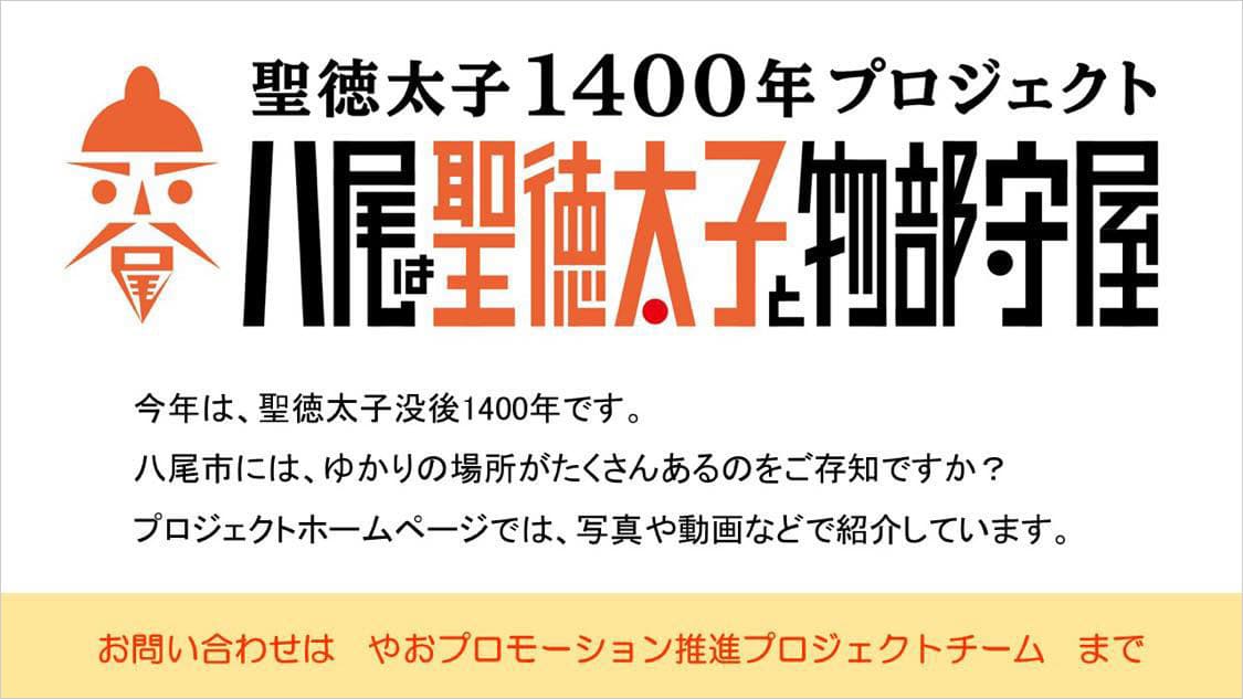 7月16日(金)から7月30日(金)の間、八尾市役所1階ロビーの番号案内表示機で、「聖徳太子1400年プロジェクト」のPR画像を表示しています。手続きをお待ちいただいている間に、見つけてみてください。