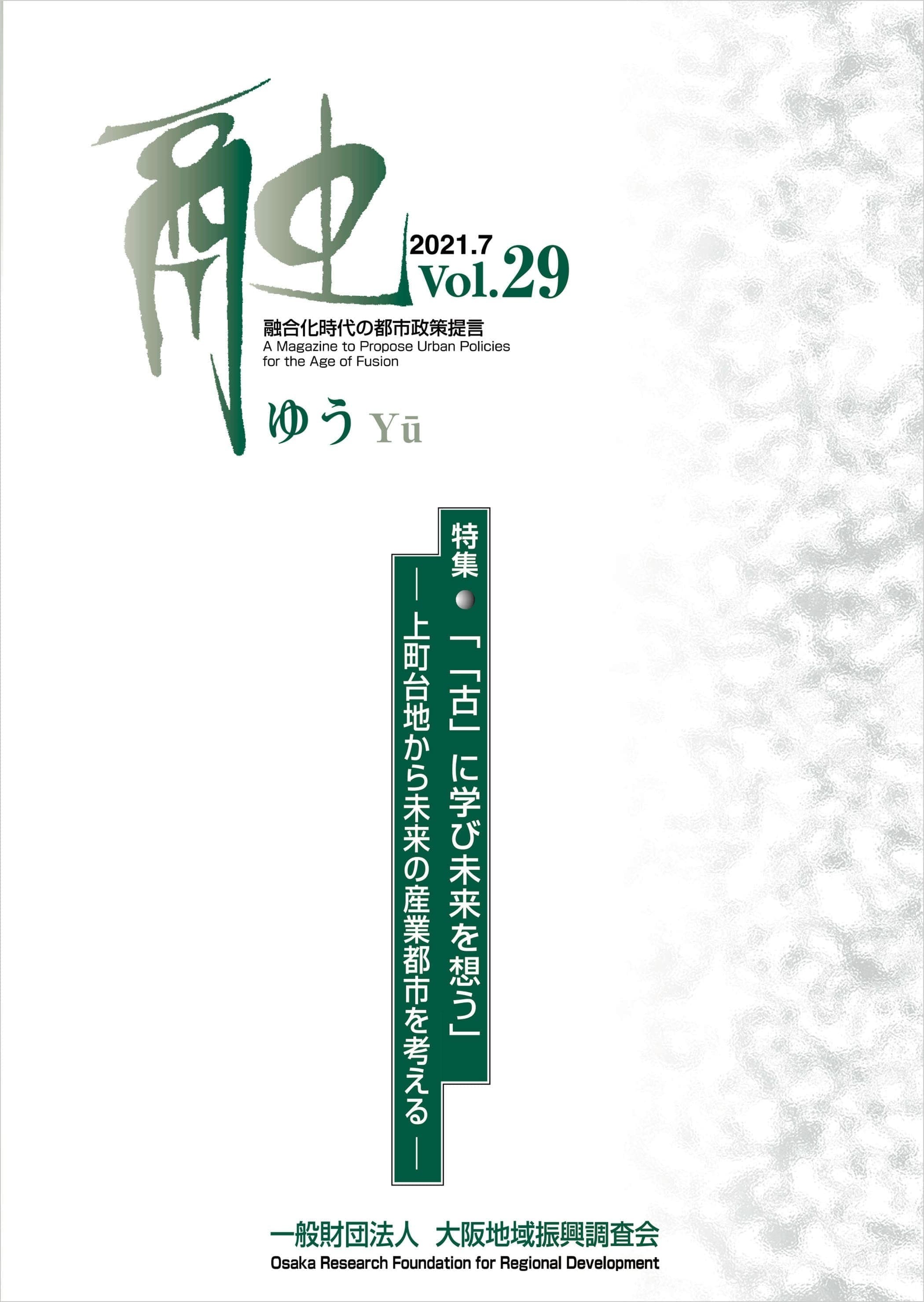 一般財団法人 大阪地域振興調査会の機関誌「融 vol.29 2021.7」に寄稿しました